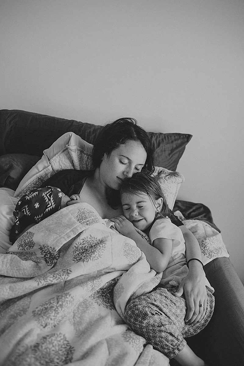 I got the call it was baby time in the wee morning hours. I drove through the rolling hills outside of Asheville as the full moon lit my path. When I arrived to their home it was giddy with excitement. As the birth tub filled we all laughed between contractions. Erica stood as ripe as the moon outside, bathed in a glorious glow. The kind only laboring women have. She worked hard in the darkness and when it felt impossible, the sun rose and brought warm light into the birth room. Aiyana woke up to see her sibling born and brought in her treasured box of jellybeans that she had faithfully saved for lavver day (labor day). (Not pictured me swaying her to sleep on my hip as I took pictures).